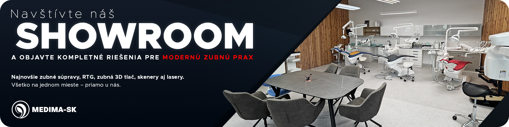 Presne na to sme mysleli, keď sme v MEDIMA-SK zriadili náš showroom v Košiciach. Je to miesto určené pre zubných lekárov, manažérov kliník a všetkých, ktorí plánujú modernizáciu alebo zriadenie ambulancie. Môžete si tu osobne vyskúšať a porovnať zariadenia z nášho portfólia – od zubných súprav cez RTG systémy až po stomatologickú 3D tlač. Návštevu ocenia aj zdravotné sestry a technici, ktorí si môžu prísť vyskúšať, čo im uľahčí každodennú prácu s pacientmi.
