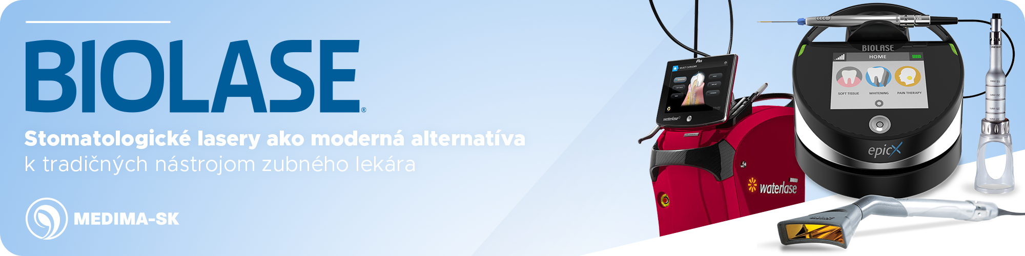 V našom portfóliu MEDIMA-SK nájdete kompletný rad laserových systémov BIOLASE, ktoré zefektívňujú prácu zubného lekára, skracujú čas ošetrenia a zvyšujú komfort pacienta.